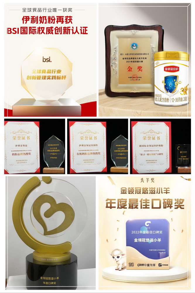 伊利奶粉全球智造标杆基地的投产,不仅满足了消费者对更高品质营养的需求,也在以科技智造赋能奶粉创新,引领行业迈向“智造2.0时代”。截止2022年前三季度,伊利奶粉及奶制品营收187.28亿元,同比增长60.5%。其中,婴幼儿配方奶粉增速居行业第一。 这一年,凭借对产品品质与配方研发的严苛追求,金领冠先后获得了“全球食品行业创新管理实践标杆奖”、“中国乳制品行业大会‘质量金奖’”、“2022年度奶粉品牌热搜奖”、“头羊奖-最佳口碑奖”、“2022年度‘探寻一罐好奶粉’口碑奖”、“妈妈帮年度口碑奖”、“中国有机奶粉大会2022年度最佳产品奖”等殊荣,以更贴合乳源的专利配方和更高品质的口粮,护航中国宝宝成长,诠释了行业和消费者对金领冠品质的高度认可。