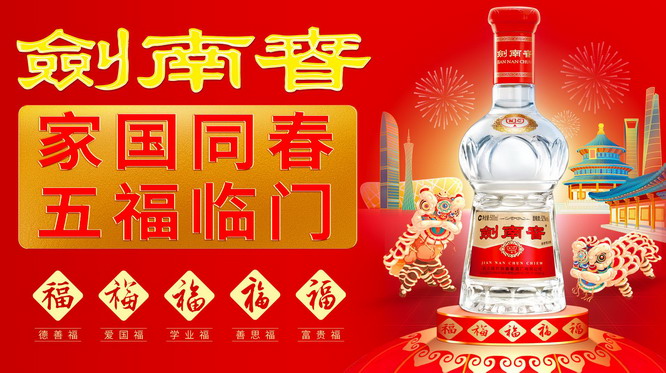 在春节期间剑南春作为人民日报的“新春送福官”,携手推出了新春文化短片,以“福”字为线索,以古事今线相融合的方式,按照唐宋元明清五个朝代顺序展开,每期讲述一个文化内容,“邀请”一位古代大家为引领者,并邀请一位当代杰出代表,通过风趣诙谐的语言讲述“福”字背后的故事,带领公众了解“福”字传承的历史,展现福文化在百姓生活中的传承意义。在著名京剧演员、消防支队大队长、“天宫课堂”授课专家、天眼FAST工程师、查干湖鱼把头传承人的带领下,乘坐时光机,与唐代书法家颜真卿、宋代文学家范仲淹、元代书法家赵孟頫、明代哲学家王阳明等来一场跨越时空的对话,在古今交替中探索“福”字背后所潜藏的文化符码。 剑南春传承1500多年发展至今,经过了盛唐的荣耀,宋业为继,明清中兴,以及近现代的飞速发展,剑南春酒传统酿造技艺历年都有总结汇集、发展精进,一部剑南春酒的酿造史,不仅体现了人类的智慧和巨大的创造力,见证了白酒行业的发展,也见证了社会波澜壮阔的发展。五福临门,福临万家,也正是剑南春千百年来见证的万千幸福。 03 文化营销助腾飞 文化是一个国家、一个民族的灵魂;文化自信是一个国家、一个民族发展中最基本、最深沉、最持久的力量;文化需要千年传承。剑南春以酒为礼,送出跨越“唐宋元明清”的“五福”,家国同春,以此致敬天下人:敬家庭、敬祖国、敬师长学子、敬战斗在各行各业的工作者,彰显出家国情怀。 而新一代的剑南春人亦肩负使命,创造更加辉煌的未来。这不仅得益于在传承历史时的不懈坚持,也离不开与时俱进、文化创新的敏锐触觉。2021年12月,剑南春推出了与三星堆博物馆联合推出了首款联名酒——剑南春·青铜纪,将剑南春的深厚底蕴和三星堆的文化艺术相结合,以酒的形式传承和发扬蜀地文明;2022年,剑南春再度携手三星堆博物馆,推出了剑南春·青铜纪【面具版】,其宣传片《金面》来源于春晚舞蹈节目,由舞蹈家杨丽萍担任艺术总监,春晚原班人马团队编排演绎,唯美地展现了一场古蜀文明的视觉盛宴。