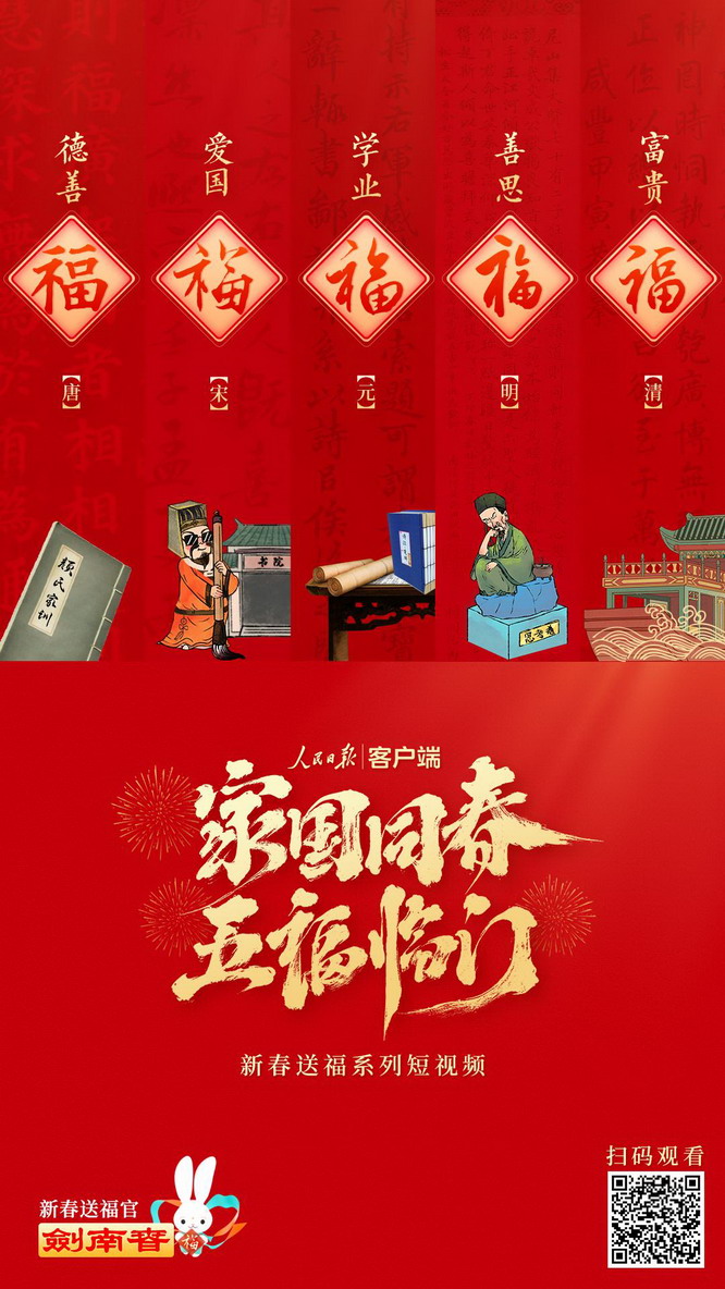 癸卯兔年新春佳节期间,剑南春挖掘五福内涵及自身深厚的历史文化底蕴,将唐宋元明清五个朝代的五位大家书写的“福”字的内涵,结合现代的福文化精神,向全国人民送去新年祝福,传递出“家国同春 五福临门”的美好祝愿。串联古今文化,连接五个维度幸福期盼,剑南春的走心祝福引发大众共鸣,传递出浓浓的家国情怀! 02 连接古今话传承 一个“福”字,流传千年,仍然是中国“年文化”最直观的缩影。相似的是,剑南春也是跨越了千年的光阴,仍然是国人最爱的白酒品牌之一,一句“唐时宫廷酒,今日剑南春”流传至今,可谓家喻户晓。而剑南春将两个源远流长的文化名片结合到了一起。 唐宋元明清五个朝代贤能名家挥毫的“福”字,每一个福字背后,都传递着农历春节的富足年味,寄寓着对美好生活的祝福。