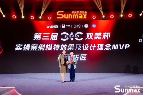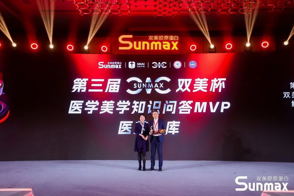 中国整形美容协会面部年轻化委员会常委曾东院长、成都今美韶华医疗美容门诊创始人兼无创科医师谢仕乔医师 最后,双美生物科技股份有限公司总经理林明毅先生为大赛主席石冰教授、陪审团团长陈光宇教授授予荣誉,双美营销总监赵何君先生为各位战队导师、助阵导师和助理导师颁发奖章,感谢他们对此次大赛的鼎力支持与辛苦付出,也祝愿他们继续在注射整形领域发挥光热,并依托SUNMAX·CIC大赛这个平台,为行业发掘更多优秀青年医师!