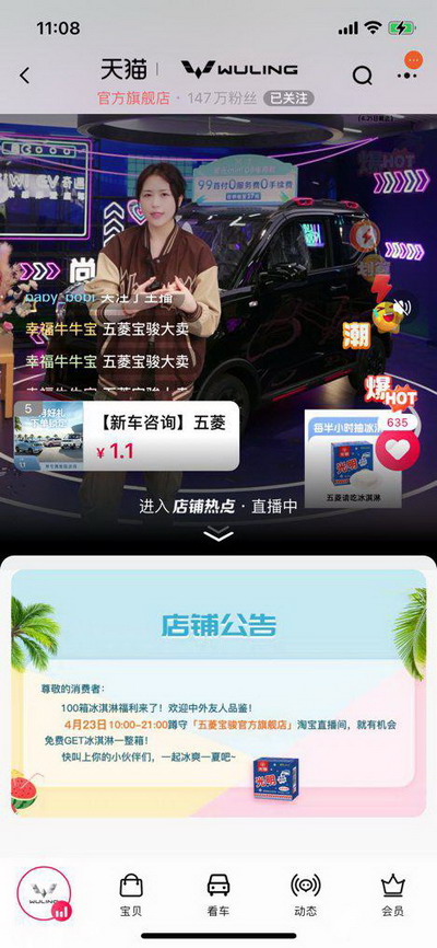 近日,宝马MINI冰淇淋事件全网热议。很快,五菱等各大车企在线上线下开始派发冰淇淋,很多网友表示没有吃到。4月23日,“五菱宝骏天猫旗舰店”发布公告称,今天10-21点将在淘宝直播间派发福袋,每半小时派发一次,共送出100箱冰淇淋,请淘宝网友吃冰淇淋,欢迎中外友人品鉴。据了解,五菱汽车每年都会送出定制款冰淇淋,网友纷纷表示,五菱这波操作在大气层,格局打开!