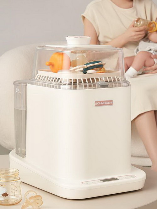SCHNEIDER奶瓶清洗机做到一键启动,洗消烘存一步到位,洗完的奶瓶进入蒸汽除菌环节,守护宝宝肠道健康,采用热风循环烘干技术,温度分布均匀,烘干速度更快更彻底,有效除去水渍问题,给奶瓶一个干燥环境。 3:奶瓶存放仓,避免二次污染洗完的奶瓶不及时用,可以放在里面储存,此时SCHNEIDER奶瓶清洗机就转换成储存仓,72h不间断换气,确保里面空气流通不产生异味。