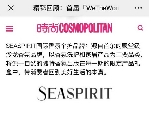 Mass Gold化妆品集团曾于2018年参与中韩日三国美容大会的展示,并作为中国世界小姐选拔赛的协作企业。次年,入驻WE MAKE PRICE,并设立北京分公司,并参加南京、成都美丽博览会。 ![]() Mass Gold化妆品集团商业领域容纳:面膜产品企划/开发、检验品质、海外输出/管理、线上线下营销、水乳产品的企划/开发、辅助材料的掌控、设计企划/开发、树立营销战略…… ![]() 熙刻公关首席执行官余倩楠女士表示,“我很荣幸成为引导Mass Gold化妆品集团未来发展团队的一员。我们相信,SEASPIRIT品牌有很大的增长空间,因为我们看到了庞大且不断增长的美妆个护市场。我期待收购后扩充我们公司的产品品类,并不断进军新渠道和新地区,同时可以为公司赋能,使其充分发挥潜力。” ![]() 熙刻公关首席执行官余倩楠女士