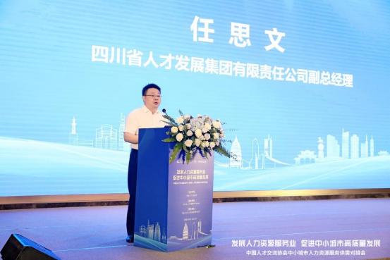四川省人才发展集团有限责任公司副总经理任思文为大家简要介绍了刚刚成立不久的四川省人才发展集团的相关情况,以及发展目标和定位,期待未来助力四川省人才工作方面,与相关人力资源服务机构开展更广泛和深入的合作。