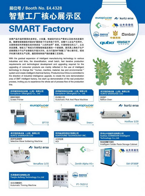 慕尼黑上海电子生产设备展作为电子制造行业重要的展示交流平台,将在2024年3月20-22日于上海新国际博览中心(E1-E6&C3馆)举办。展会现场将吸引超850家电子制造行业的创新企业加入,展会规模将达近75,000平方米。展品范围涵盖整个电子制造产业链,包括电子和化工材料、点胶与粘合技术、电子组装自动化、测试测量与质量保证、电子制造服务、表面贴装技术、线束加工与连接器制造、元器件制造、运动控制与驱动技术、工业传感器、机器人及智能仓储等,一站式、完整、高效地掌握智能制造与电子创新全产业链上的全球前沿技术与产品。 图源:2023慕尼黑上海电子生产设备展现场 特色展区亮相 2024慕尼黑上海电子生产设备展携手业内优质的SMT、微组装及半导体设备材料厂商,隆重推出特色展区-SMT智慧工厂核心展示区和微组装科技园。敏锐把握行业发展脉络,致力于以产业智能化升级为导向,打造智能制造发展新趋势。 观众预登记火热进行中,前往reg.exporeg.cn/web/2024/CN/243mnh/#/login?ExhID=6554&InviteType=Platform&InviteCode=3 ,完成注册现场免排队入场。