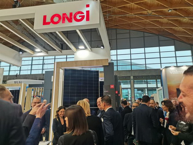 馆现场D1-D7为光伏板、逆变器、储能电池专业馆,欧洲光伏协会组织欧洲各大光伏巨头悉数出场,展会现场还组织了各种活动,吸引欧洲客商参与互动。华为,通威,正泰,固德威,古瑞瓦特,美的,海尔,德业,隆基,晶科,麦田,艾罗,三晶,纳通,大恒,欣旺达,中清,中润,力高,科士达,阿特斯,英威腾,LG,西门子,ABB,AIKO,海泰,贝盛,英利,汉伏,金刚光伏,等知名中国企业也纷纷登台亮相!中国超过50家上市公司共同参与欧洲意大利能源展,华为超过400方展位面积“惊艳”全场!