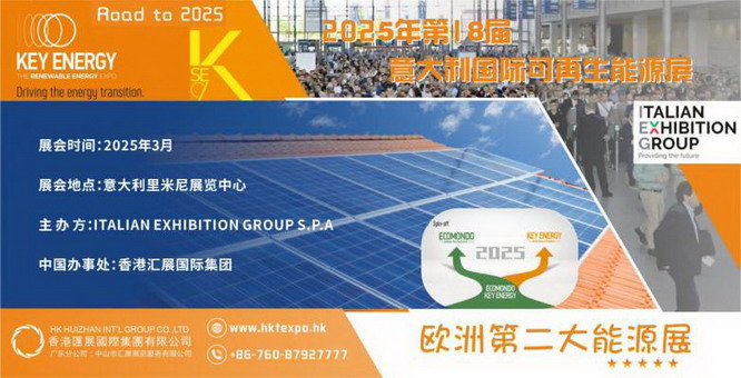 3月1号第18届意大利里米尼国际可再生能源展(K.EY)由知名主办方ITALIAN EXHIBITION GROUP S.P.A组织举办,每年一届,是欧洲第二大能源展,也是覆盖范围最全知名度最高的可再生能源展览会。 该展会将于2024扩大规模至16个展馆,更专注于光伏,电能储能,有效节能,为行业和住宅提供能源的决解方案,实现可持续发展。开展当天意大利能源部部长也亲临参与了开幕式活动,并为本次的活动给予了高度的评价。展品涵盖太阳能产品及光伏储能系统与设备、风能设备、水能技术、海洋能系统、电力与新能源等,新能源汽车。2025展会开设将超过20个馆,展出面积达150000平方米,共吸引了1500家参展商,超过120000名观展商观展,为企业开拓意大利光伏市场提供了绝佳的平台