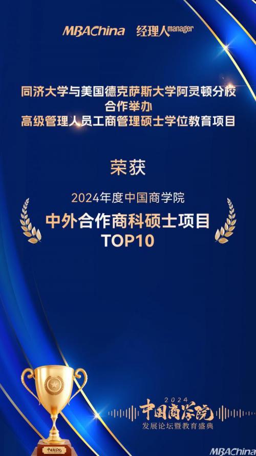 2024年11月29日,由MBAChina和经理人杂志联合主办的“2024年度中国商学院发展论坛暨教育盛典”在北京隆重举行。此次盛典以“现代化进程中的管理智慧与担当”为主题,邀请了三百余位来自政界、教育界的专家学者、商科院校代表、行业领军人物、专业研究机构和国内外主流教育媒体等相关人士现场参会,分享最新教育理念和实践经验,共同论道中国商科教育的未来发展。数万名在线观众共同见证了中国商科教育年度荣耀时刻! 盛典现场,MBAChina和《经理人》杂志重磅发布了“2024年度中国商学院中外合作商科硕士项目TOP10”榜单。同济大学与美国德克萨斯大学阿灵顿分校合作举办高级管理人员工商管理硕士学位教育项目以其卓越的教育质量、国际化的教学资源、深厚的学术底蕴以及在商界和学术界的广泛影响力,荣获“2024年度中国商学院中外合作商科硕士项目TOP10”第5名! “2024年度中国商学院中外合作商科硕士项目TOP10”榜单由MBAChina与《经理人》杂志共同发布。榜单以教育质量、国际影响力、创新能力和社会责任等维度为考量基准,对学生满意度、师资力量、学术研究和毕业生就业等情况进行了综合评估,旨在引领并推动中外合作商科硕士项目的高质量发展,在全球商业教育舞台上展现我国商科教育国际化的高水平,是对全球化背景下商科教育创新趋势的积极响应。 从1956年同济大学开设经济与管理类课程开始,到1984年建立经济管理学院,再到学科全面发展的今天,同济大学经济与管理学院历经六十余年的建设,从无到有,从弱到强,形成了特色鲜明的经济管理类交叉学科领域,具有较高的学术声誉和社会影响力。 同济大学经济与管理学院倡导“包容、创新、集成、致用”的核心价值观,以“扎根中国大地,用创新性的理念和方法培养高质量优秀人才,造就业界精英;面向世界,建设高水平国际合作平台,应对全球挑战;聚集高层次人才,打造国际一流的学术创新团队和科研中心,创造管理新知;着眼现代化经济体系,服务政府、企业和社会,践行持续发展”为使命,努力建设成为全球知名的商学院。 德克萨斯大学阿灵顿校区成立于1895年,是一所集教学、研究为一体的综合性大学,是美国中西部前五十所大学之一,在德州大学系统中名列第二。阿灵顿商学院是美国前八十所著名商学院之一,以培养企业中层以上管理人才著称。该学院的学位项目均获得美国最高商学院评定机构 AACSB 的认证、美国南方学院与学校协会SACS认证。 经教育部予以资格认定,2002年起同济大学与美国德克萨斯大学阿灵顿分校合作举办高级管理人员工商管理硕士中外合作办学项目(同济-UTA EMBA项目)。 同济大学与美国德克萨斯大学阿灵顿分校合作举办高级管理人员工商管理硕士中外合作办学项目,项目联合两所商学院的顶尖师资和全球校友平台,致力于培养具有全球视野、社会责任感、创新精神、掌握现代经济管理知识和技能的业界领袖。 扩大教育开放,同世界一流资源开展高水平合作办学是推动我国教育现代化、提升教育国际竞争力的重要途径。“2024年度中国商学院中外合作商科硕士项目TOP10”榜单的发布,将深度促进各商学院积极探索国际化合作路径,创新教育模式,提升教育质量,培养更多具有国际视野和创新能力的高素质人才,进一步提升我国商科教育的国际影响力。 中国首席商业资讯门户;更多内容请关注中国商业网各频道、栏目资讯。 免责声明:凡未注明来自本站的稿件和图片作品,系转载自其它网站,转载目的在于信息传递,并不代表本站赞同其观点和对其真实性负责 。 |