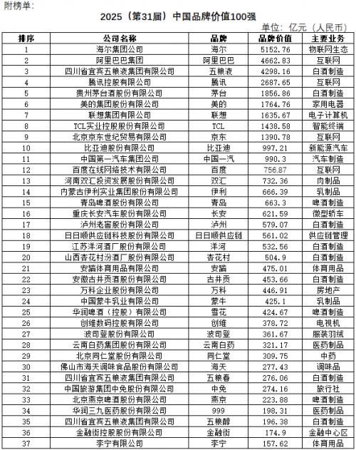 2025(第31届)中国品牌价值100强研究报告日前揭晓,海尔品牌价值5152.76亿,连续24年居首,其后是阿里巴巴4662.83亿、五粮液4298.16亿、腾讯2687.65亿、茅台1856.86亿、美的1764.76亿、联想1635.67亿、TCL1438.58亿。 该研究始于1994年,是国内最早也是持续时间最长的关于品牌价值比较的专业研究。该研究在国内最先提出“品牌是最有价值的资产”,目的是推进中国企业创建自主品牌,由北京名牌资产评估有限公司连续31年跟踪进行。 今年的研究重点,继续关注2020年新冠疫情5年来对品牌发展的影响。100品牌2019年平均营业收入543.63亿,2024年度平均823.69亿,5年增长51.52%,平均年增长10.3%。但是近5年的增长速度与疫情前3年年均增长19.28%相比,年均增长下降了9.39个百分点。 2008年全球金融危机,观察品牌在金融危机以后的发展态势,成为近17年的研究重点。与金融危机前的2007年相比,100品牌平均收入累计增长7.13倍。更为可喜的是,平均营业利润累计增长达到11.54倍,超过收入增长水平4.41个百分点。2024年度收入增长4.44%、营业利润率保持10.9%,品牌依然是最有价值的资产。 31年的研究一再证明,市场竞争越激烈,品牌价值越是凸显。1994年80个品牌平均收入19.58亿,而今100品牌31年总增长41.07倍。前20位品牌1994年平均收入49.84亿,2024年平均3523.33亿,增长了69.69倍,更是凸显强者恒强趋势不变。 31年前正是中国制造业品牌崛起之初,该研究选取的研究对象都是消费类制造业竞争性品牌。后来陆续增加了18个互联网及服务业品牌,也是为了更好的研究互联网新经济对于传统制造业品牌的影响。研究认为,二十多年前是我国制造业品牌高速发展的黄金阶段,其后是以互联网为首的服务业品牌迅速崛起期。以金融危机前的2007年为坐标,82个制造业品牌平均收入是112.43亿,18个服务业品牌平均只有50.66亿,制造业品牌规模是服务业品牌的2.22倍。到了2024年,制造业品牌平均收入608.76亿,服务业品牌平均收入已经达到1802.82亿,是制造业品牌规模的2.96倍,充分显示了互联网时代的产业发展特征。但研究发现,从2022年开始,服务业的发展已经从过去年度2位数的增长速度回落到1位数。82个制造业品牌在疫情以来最艰难的5年,年均增长达到10.3%,显示我国制造业主导品牌的发展走向依然保持稳健。 报告显示,2024年度家电行业的增速最高,平均增长10.32%,其次是白酒品牌增长8.01%。旅游业近几年受疫情影响最大,2023年度旅游业增速达到48.09%,2024年度则是负增长1.59%。客观分析,旅游业2023年度的高速增长是建立在2022年受疫情影响年度减速14.23%的基础之上。但是零售业的下降则是连年不断的,2022年下跌21.21%,2023年下跌24.23%,2024年下跌12.4%,表明实体零售连锁品牌逐步缩减或离场已是大势所趋。在跟踪研究的细分行业中,有6个出现年度负增长,依次是啤酒、粮油肉、旅游业、乳制品、零售业,降幅最大的是与住相关的品牌,2024年度降幅达29%。 伴随中国耐用消费品制造业的发展与崛起,2002年以来,海尔品牌价值连续24年居首。近年更是得益于其在生态共建、全球布局、IP矩阵、AI科技等多维度的显著成效。在生态共建方面,海尔入股新时达、汽车之家,持续深化数字经济产业生态建设;在全球布局方面,强化 “本土化研发、本土化制造、本土化营销” 三位一体布局,并携手利物浦、巴黎圣日耳曼等冠军球队,进一步提升全球品牌影响力;海尔构建 KOB、KOE、KOS 三级矩阵,推动流量沉淀为终身用户,转化为生态力量。其中通过与网友交互推出的懒人三筒洗衣机,上市4个月交付量便达10万台;在AI科技方面,推出“AI之眼”系列家电,使家电从“听懂指令、按需执行”升级为“看懂状态、主动服务”。 31年来,五粮液品牌价值在白酒行业一直排在第一位。研究认为,品牌价值不是比谁的产品卖价高,利润高,而是产品市场覆盖率高,人们重复消费的频率高。如果仅仅是卖价高,但是由于种种原因而产量受局限,市场假冒很难免。品牌的名称也很重要,酒类产品过去常常以地名作为品牌,如法国“香槟”因为突出的是产地,其品牌发展因此受限。五粮液的名称很符合酒的特质,而且有着丰富的产品线,如五粮春、五粮醇等不同产品档次和清晰的价位区分,能够覆盖更多不同需求的消费群体,因而具有更大的发展空间。 报告强调了31年研究一贯坚持的观点:中国人自己创建或在中国市场创立的合资品牌;能够获取相关资料,重点来自公开数据;跟踪研究品牌价值历史轨迹;发现并研究细分的消费新趋势;坚持独立研究独立发布,不追求显赫的国家或中字头旗号,为消费者及海内外社会各界研究中国品牌提供一种参考。 100品牌分布在61个大小行业类别中,市场规模从数千亿到几千万,都是贴近百姓生活与消费的行业佼佼者。让更多的与消费者生活密切相关的细分行业品牌进入研究视野,也是该研究秉持的一个观点。 与其他品牌价值排行榜不同的是,百个品牌中没有规模显赫的石油石化、电力、铁路、通信等资源垄断性行业。该研究认为,资源垄断性行业规模的大小及分分合合是国家的战略与策略,不完全是市场竞争的结果。 中国首席商业资讯门户;更多内容请关注中国商业网各频道、栏目资讯。 免责声明:凡未注明来自本站的稿件和图片作品,系转载自其它网站,转载目的在于信息传递,并不代表本站赞同其观点和对其真实性负责 。 |