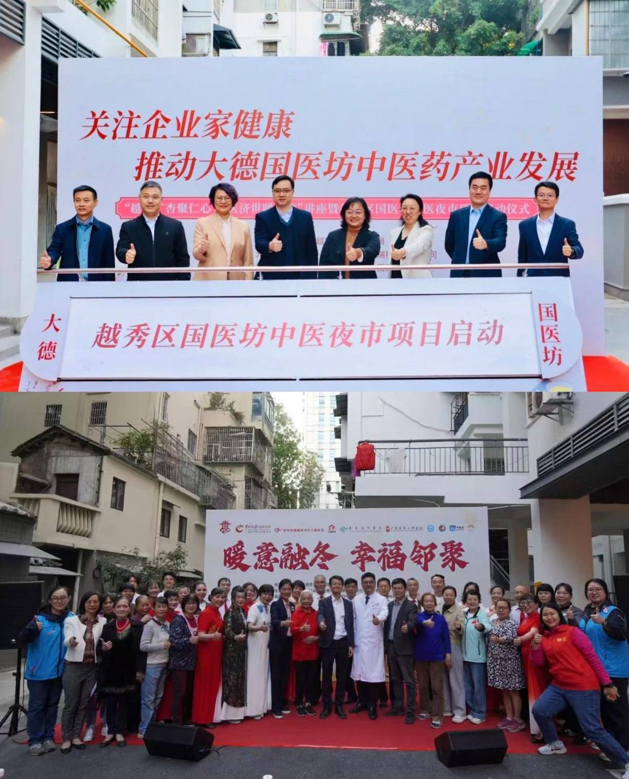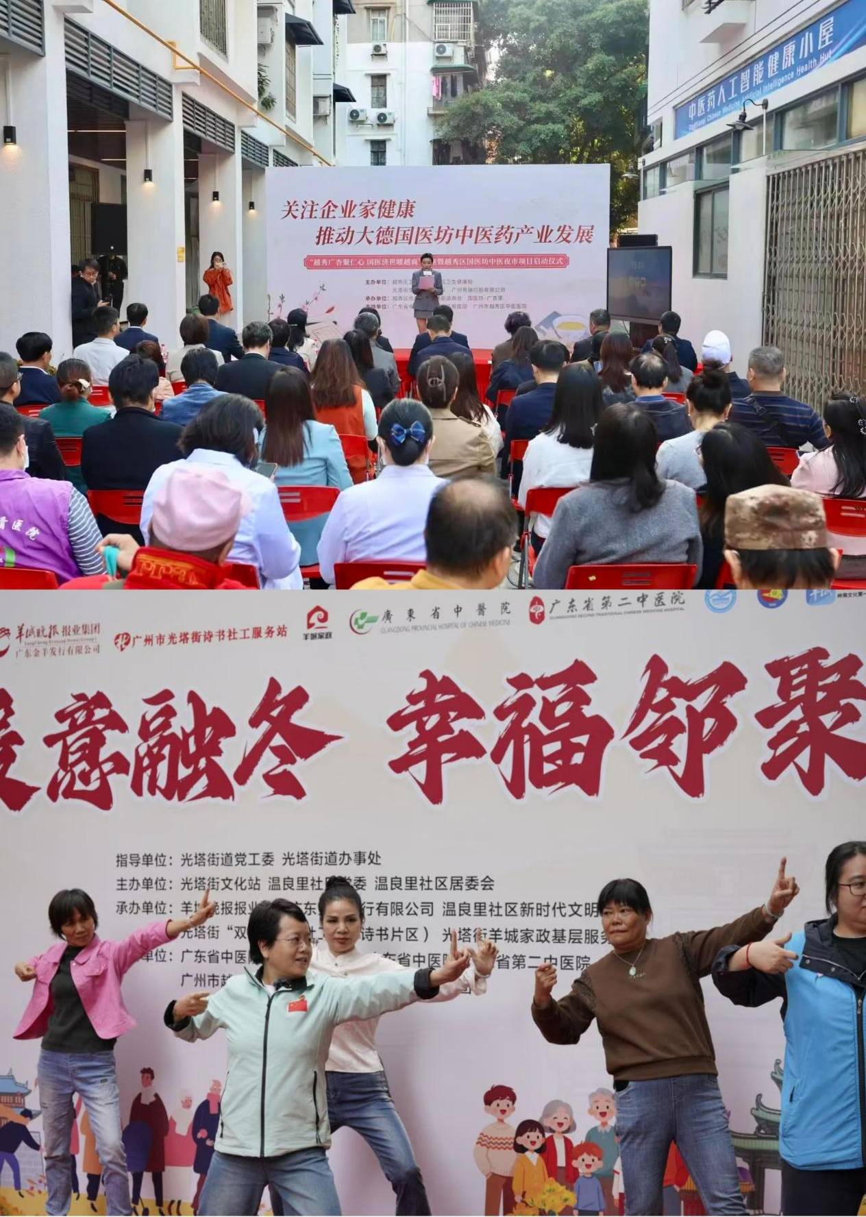 2025年11月28日,冬意初临,位于解放中路象牙街的大德国医坊·广杏里,却格外温暖熙攘。这边街,“越秀广杏聚仁心”中医夜市在热闹启动,那边巷,温良里社区“暖意融冬 幸福邻聚”的欢声笑语已然响起。两场活动,一曲同工,在 “国医坊·广杏里” 这个充满药香与温情的开放式街区内,演绎着传统中医智慧如何悄然融入现代街坊的日常。