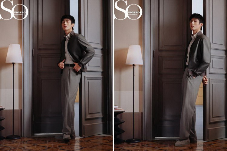 封面灰色蒙扎系列西服套装,以简约廓形呼应品牌建筑质感精裁,定格经典绅格;