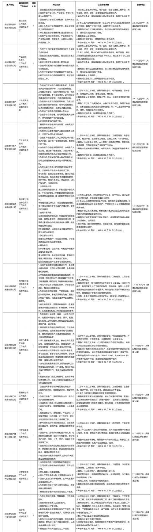 原文招聘公告(链接:xingrongxi.cn/zhaopingonggao/202512/781.html) ·咨询电话·招聘服务:028-82743200(工作日9:00-17:00)人力资源部:028-82617563(工作日9:00-17:00) 成都九联投资集团有限公司