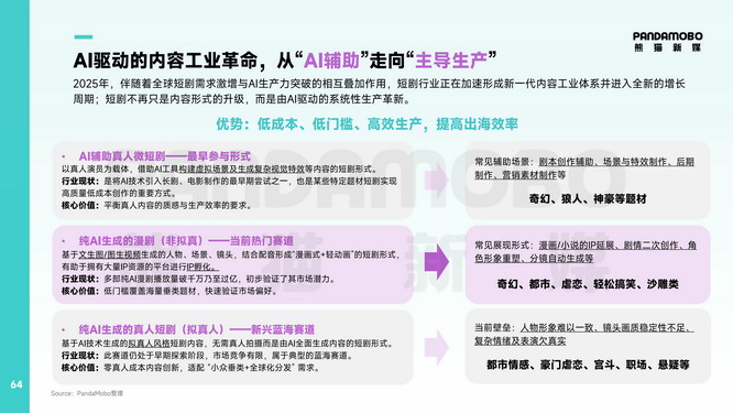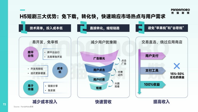 重磅发布!162页APP出海深度报告 2025年,全球移动应用出海正在经历结构性洗牌。当整体广告主数量缩减16.7%、市场从增量扩张转向存量深耕时,短剧与AI行业出海却逆势而上,共同重塑行业营销格局。这一关键拐点下,久其数字旗下“AI+”出海整合营销先行者PandaMobo熊猫新媒联合知名移动广告情报平台广大大(SocialPeta)重磅发布《2025移动应用营销白皮书(非游戏)》(以下简称“报告”)!这份长达162页的行业力作,以亿级数据为支撑,深度拆解市场全景、营销大盘、主要赛道、区域洞察与创意策略等,尤其在短剧与AI+两大核心增长领域,PandaMobo输出大量实战洞察,为从业者提供了一份兼具战略高度与落地颗粒度的增长指南。 作为Meta、Google、Taboola等全球头部媒体官方合作伙伴,PandaMobo整合全球优势资源,已经助力大量短剧、AI工具等行业客户高效出海。此次联合发布白皮书,既是对行业趋势的精准预判,更是PandaMobo多年实战经验的系统输出,旨在与行业共同探索移动应用出海的下一站增长密码。 一、短剧赛道新大陆:H5短剧影响生态布局,AI漫剧重构增长逻辑 报告数据显示,海外短剧市场正迎来指数级增长:2025年市场规模将达36亿美元,同比激增126%,2026年预计攀升至60亿美元,成为非游戏应用出海最具潜力的赛道之一。市场爆发的背后,底层分发逻辑的重构才是真正的产业革命。 1.H5短剧:拓展APP中心化格局 数据显示,头部H5短剧月访问量已达百万级,凭借“免下载即看、转化路径短、响应热点快”三大优势,H5短剧成为腰部厂商试水与头部厂商矩阵布局的重要形式。H5短剧从技术上通过跨平台运行、支付直连的方式,绕过应用商店15%-30%的佣金抽成,将用户转化链路从“点击-下载-注册-付费”压缩至“点击-付费”两步,有助于促成转化。 PandaMobo在报告中梳理了H5短剧覆盖后台搭建、内容适配、本地化支付、投放优化等全链路的完整系统,例如: ● H5短剧架构需要稳定、安全的后台管理和流畅、个性化的前台体验提供成功的基础; ● 把握关键市场偏好精准投放,叠加“译制剧快速测款+本土剧价值沉淀”的双轨内容模型利于快速打开当地市场; ● 详解从聚焦高转化的核心国家冷启动到构建可持续性的本土化运营,再到放眼全球扩张的跨国复制,3步测通H5广告模型,实现投放的合理扩张与营收的稳步提升…… 拆解详细,环环相扣,为不同量级企业提供差异化落地路径。 2.AI漫剧:AI催生的“新物种” 毋庸置疑,AI技术已深度应用于短剧素材制作、本地化适配与智能投放,实现效率与精准度双重提升。 但AI不止于工具性赋能,它深度影响了短剧创作,更是催生出“零真人成本”的内容新物种AI漫剧。PandaMobo系统梳理了AI漫剧三大形态:AI转绘短剧将真人画面转化为动漫风格,实现IP视觉焕新;AI+动态漫基于漫画原著添加动效与配音,激活存量IP价值;AI+动画短剧由AI全流程创作,虽成本更高但质量突破上限。 PandaMobo调研显示,AI漫剧的受众以年轻男性为主,偏好热血、玄幻、系统等题材,全球普适性显著强于传统短剧,其低成本、低门槛、高产能的优势,正成为IP孵化与垂类题材覆盖的重要抓手,典型案例《传武AIGC版》凭借超高人物一致性与东方玄幻美学,首周播放量破千万,验证了市场潜力。 依托在短剧出海领域的深厚积累,目前,PandaMobo已构建从内容本土化适配、AI工具应用到全渠道投放的闭环服务,相关案例在报告中提供了可复用的营销方法论。 二、AI+赛道新打法:多模态营销进入F.A.S.T.共鸣时代 2025年是AI应用出清的淘汰年——中小产品因变现能力弱、同质化严重而退出,广告主总数下降48%,但单广告主月均素材量激增83%,12月总素材量环比再涨13.4%。报告预判,2026年将成为AI应用出海的商业价值兑现元年,技术成熟、市场需求与全球化布局形成合力,推动行业从技术赋能向规模化变现跨越。 1.“梯队式”市场格局中的机遇与红线 目前区域市场呈现“三梯队”格局:北美、欧洲作为成熟市场,用户对隐私安全和功能深度要求苛刻;同为成熟市场的日韩则青睐高审美、高精准产品;东南亚处于成长阶段,菲律宾、越南、印尼的教育场景需求旺盛——每个区域市场都有偏好市场亟待填补。但同时,合规、隐私安全与文化红线必须严守,涉及地缘政治、宗教冲突、社会敏感话题的素材必须一票否决,“智能向善”的理念将助力企业突破地缘壁垒。 2.多模态AI产品营销需要“F.A.S.T.”的系统化能力 在这种背景下,行业已从“功能竞赛”转向“精准穿透”,谁能用更少预算击穿更深用户心智,谁就能存活。针对多模态AI产品的营销痛点,PandaMobo提出F.A.S.T.共鸣模型,通过: ● Functional Showcase功能演示 ● Audience & Scenario受众与场景 ● Story & Emotion故事与情感 ● Technique & Format技术与形式 四大维度,实现“精准触达+内容共鸣”。功能层需展示智能对话、写作辅助、翻译等核心能力;受众层要基于人口特征、文化背景、媒体偏好等维度完成精准画像;故事层通过POV种草、痛点剧情、小剧场对比、KOL专业引导四大创意公式建立情感连接;技术层则强调适配TikTok、Instagram等平台的原生内容形态。 3.创意公式的实战价值在投放数据中得到验证 基于“F.A.S.T.共鸣模型”,进一步演化推导四大创意公式,为营销素材创作提供系统性指导: ● POV种草公式以“第一视角+过程展示+成品惊艳”结构,展示创意生成功能。 ● 痛点剧情