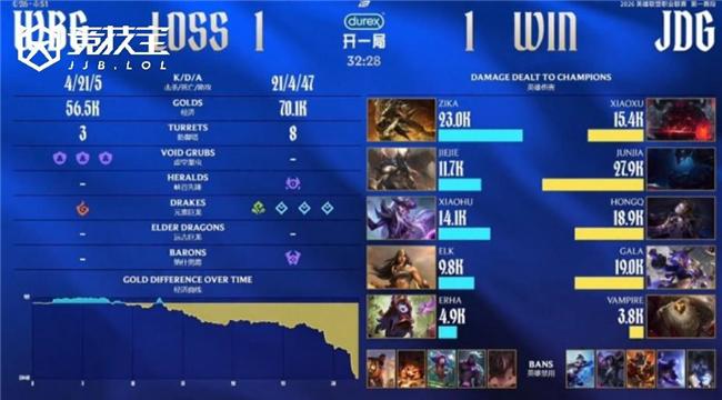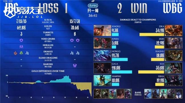 2026LPL第一赛段组内赛继续推进,今日迎来焦点对决DG对阵WBG。最终WBG以2:1击败JDG,在双循环中完成对JDG的双杀。此役过后JDG登峰组战绩来到4胜3负,暂居第三。常规赛阶段还剩最后三场Bo3,将依次对阵AL、iG与TES。WBG同样来到4胜3负,拿下登峰组第四胜,暂列组内第四名。 第一局BP 蓝色方WBG:安蓓萨、皇子、沙皇、女枪、女坦 前期Jiejie皇子联动Erha女坦强势入侵野区,成功击杀Junjia杰斯拿到一血。但中路HongQ吉格斯与Junjia杰斯迅速回击,合力击杀Xiaohu沙皇,并迅速拆掉WBG中一塔,JDG一度取得约1.2k经济领先。中期关键节点,Junjia杰斯在野区掉点,WBG顺势控下大龙,不过JDG四人赶来接团,打出0换2,依旧保持2.5k经济优势。但随后小龙被Jiejie皇子抢下,WBG通过连续推塔运营将经济差距抹平。比赛进入后期,Junjia杰斯在视野点回城被WBG发现,WBG果断开团,Zika安蓓萨直接切入限制JDG下路双人组,WBG再控大龙,经济反超至3k。最终龙魂团中,Elk女枪与Xiaohu沙皇火力全开,团灭JDG,WBG一波推平基地先下一城。 第二局BP 蓝色方WBG:辛德拉、潘森、鳄鱼、璐璐、希维尔 前期Jiejie潘森配合Xiaohu辛德拉先手击杀HongQ发条取得一血,但Junjia梦魇迅速反击,关灯飞中完成单杀。随后进入JDG节奏时间,梦魇与发条联动频频奏效,Junjia关灯飞谁谁死,多次精准切入带动全场,JDG控下先锋并推掉WBG下路一塔,经济领先来到4k。中期JDG稳稳听牌电龙魂,WBG节奏全面受限。Zika鳄鱼与Erha璐璐接连被抓,下路团战V神巴德关键大招定住多人,Junjia轻松双杀,JDG打出1换5团灭,顺势拿下电龙魂与大龙,经济优势扩大至9k。最终JDG中路推进,Junjia梦魇瞬间融化Elk希维尔,JDG完成0换5,推平WBG基地,将大比分扳成1:1。 第三局BP 蓝色方JDG:奎桑提、蔚、冰鸟、卢锡安、娜美 开局即爆发对抗,上路1v1中Zika兰博开烧单杀徐神奎桑提。与此同时下路3v3,Erha蜘蛛先手击杀V神娜美,尽管Elk女警被Junjia蔚一拳带走,WBG仍打出1换2占得先机。Junjia蔚再次下路锁头击杀Elk女警,V神娜美收掉残血Erha蜘蛛,JDG控下小龙,本局为风龙魂,经济小幅领先1k。HongQ冰鸟下路吃线被Jiejie波比绕后壁咚,配合Zika兰博完成击杀。小龙团中Junjia蔚先手控龙,Jiejie波比虽将其击飞但未能阻止,JDG众人残血撤退,成功听牌风龙魂。龙魂团Jiejie波比锤飞HongQ冰鸟,Jiejie拿下小龙,GALA卢锡安瞬间双杀,JDG打出1换3,经济领先来到3k。中路GALA卢锡安被Jiejie波比留住,送给Elk女警关键大人头。WBG顺势转大龙,JDG三人接团失败,Junjia蔚绕后被击杀,徐神奎桑提进场即被融化,WBG拿下大龙并完成1换2局势逆转。第二次龙魂团Elk女警点掉GALA,Erha蜘蛛逮捕Junjia蔚,WBG0换2后拿下小龙经济反超2k。JDG搏命开大龙,WBG及时赶到,徐神奎桑提率先被Zika兰博烤掉,Elk女警再击杀HongQ冰鸟WBG轻松0换3,一波推平JDG基地,锁定比赛胜利。 平台不仅覆盖英雄联盟、Dota2、CS2等主流电竞赛事,也涵盖足球、篮球等传统体育项目,并通过大量独家原创内容,打造集资讯、互动与娱乐于一体的电竞社区,带来更加丝滑畅快的观赛与参与体验。 中国首席商业资讯门户;更多内容请关注中国商业网各频道、栏目资讯。 免责声明:凡未注明来自本站的稿件和图片作品,系转载自其它网站,转载目的在于信息传递,并不代表本站赞同其观点和对其真实性负责 。 |