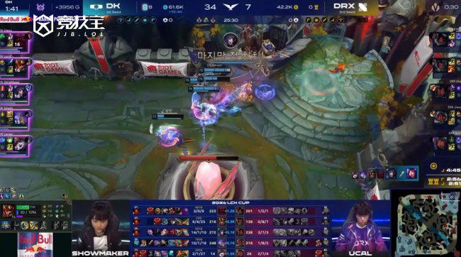 2026 LCK CUP入围赛继续进行,今日首场由DK迎战DRX。比赛结果毫无悬念,DK以2-0击败DRX,顺利锁定季后赛席位。此役过后,DRX面对DK的大场连败纪录扩大到15连败。在本场之前,DRX自2023年起对阵DK已遭遇14次大场失利,如今这一尴尬纪录仍在延续。落败后的DRX将进入最后生死战,明日与NS和DNS之间的败者通过BO5争夺最后一张季后赛门票。 第一局BP 蓝色方DK:芸阿娜、皇子、狐狸、奥恩、璐璐 前期下河蟹团爆发冲突,Jiwoo飞机率先冲进龙坑击杀Smash芸阿娜拿下一血,但DK迅速完成反包夹,四人合围龙坑打出2换4,许哥狐狸一波收下三个人头,局势瞬间倾斜。随后DK持续入侵DRX野区,许哥狐狸频繁游走制造击杀,Smash芸阿娜补上双杀,DK再度打出1换3,经济领先来到2k。中期DK如法炮制继续扩大优势,14分钟经济差接近7k。紧接着许哥狐狸再度斩获接近四杀的团战表现,15分钟叠满25层杀人书。18分钟时DK经济优势已经扩大到1w2k。比赛进入后期后悬念基本消失,DK稳步推进,轻松推平DRX基地,先下一城。 第二局BP 蓝色方DK:潘森、卢锡安、蛇女、凯南、布隆 开局下河蟹团,许哥蛇女闪现平A触发布隆被动将Andil泰坦晕住,顺利拿下一血。随后许哥凭借极限走位连续击杀Ucal阿萝拉与Willer安蓓萨,直接完成三杀,DK经济领先2k。下路对线阶段,Jiwoo伊泽瑞尔完成线上双杀为DRX止血。小龙团中,许哥蛇女大招石化三人,Smash卢锡安收下双杀,DK经济优势扩大至3k。中期先锋团,Siwoo凯南天雷开电进场,DK打出1换3。随后野区混战中许哥一度被抓,但Siwoo凯南及时兜底,率队完成1换4,将经济优势拉开到7k。后期小龙团,Smash卢锡安灵活滑步完成三杀,DK打出1换5团灭DRX,随后一波推进结束比赛,完成对DRX的横扫。 随着DK成功晋级季后赛,入围赛的竞争愈发激烈。作为液体百科亚洲区长期战略合作伙伴,竞 技 宝持续深耕电竞内容与赛事生态,为观众带来更专业、更全面的赛事解读与互动体验,陪伴玩家见证每一个关键时刻。 中国首席商业资讯门户;更多内容请关注中国商业网各频道、栏目资讯。 免责声明:凡未注明来自本站的稿件和图片作品,系转载自其它网站,转载目的在于信息传递,并不代表本站赞同其观点和对其真实性负责 。 |